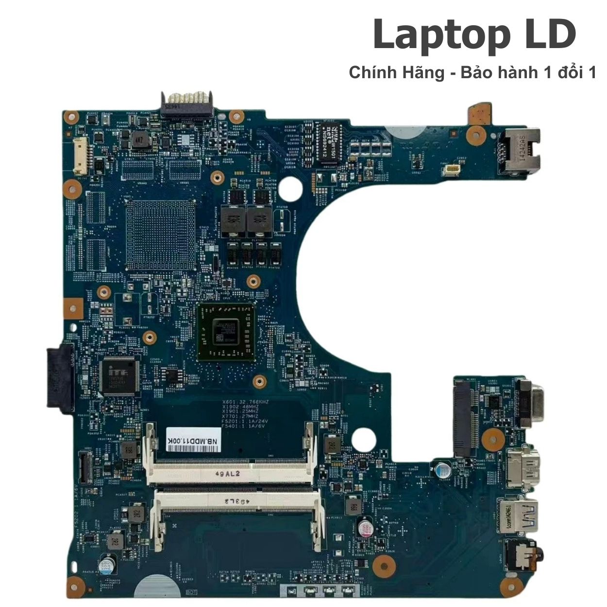 Mainboard chính hãng dành cho dòng Acer Aspire E1-422G – laptop giá rẻ – ổn định – phù hợp học tập và văn phòng nhẹ. Máy sử dụng CPU AMD E1-2500 (Kabini • 2 nhân • 1.4GHz • TDP 15W) và GPU tích hợp AMD Radeon HD 8240, một số bản có VGA rời Radeon R5 M2xx. Main đúng mã 12247-3 – hàng zin chuẩn Acer, được Laptop LD kiểm tra đầy đủ CPU – RAM – VGA – ổ cứng – HDMI – USB – Wi-Fi trước khi bàn giao.