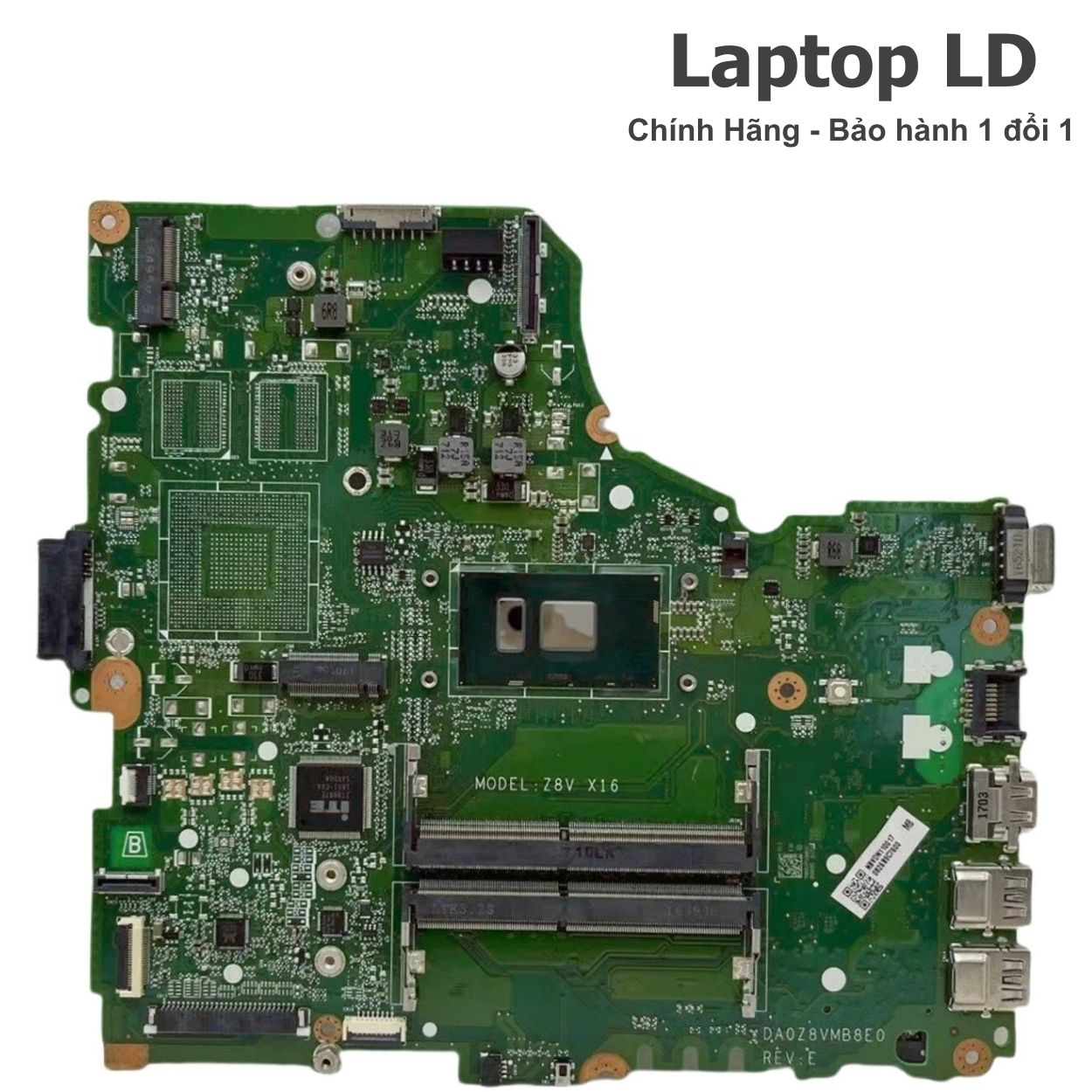 Mainboard chính hãng dành cho dòng Acer Aspire E5-475G – laptop 14" phổ biến, hiệu năng tốt với CPU Intel Core i5-6200U (thế hệ 6) và VGA rời NVIDIA GeForce 940MX 2GB. Main đúng mã DAZ8VMB18D0, tương thích hoàn toàn với chassis E5-475G, hỗ trợ đầy đủ các cổng I/O và chuẩn SSD M.2. Sản phẩm được Laptop LD kiểm tra kỹ CPU – RAM – VGA – SSD/HDD – USB – LAN – HDMI – Wi-Fi trước khi giao.