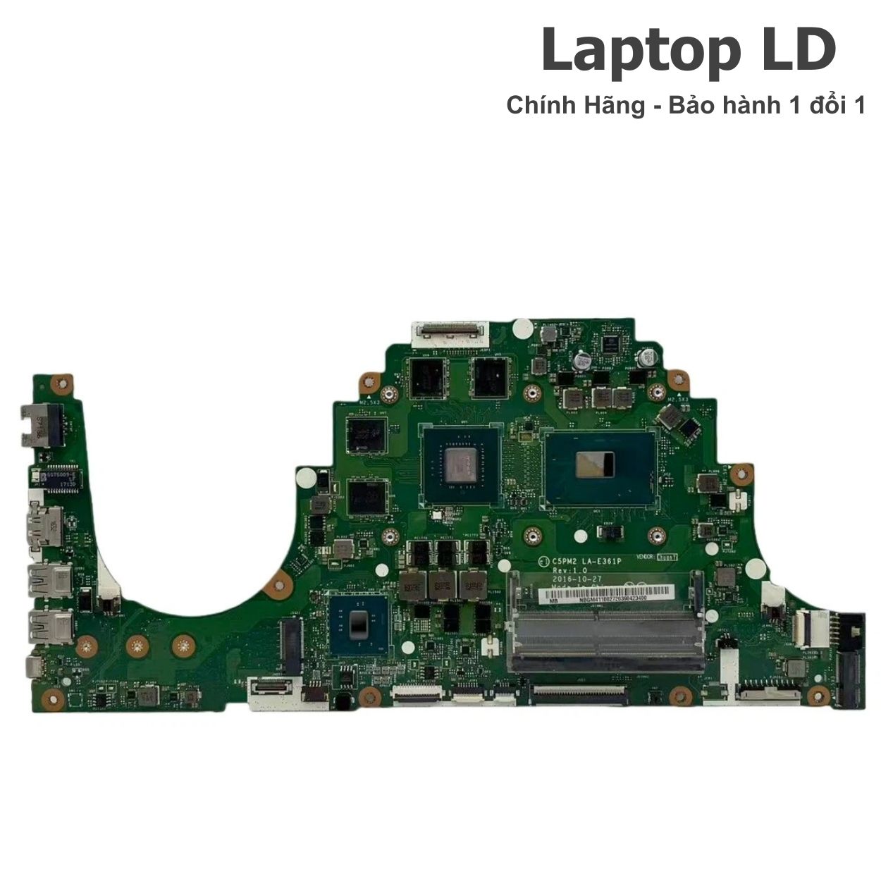 Mainboard chính hãng dành cho dòng Acer Aspire VX5-591G – laptop gaming 15.6" nổi tiếng với thiết kế hầm hố & tản nhiệt kép. Máy sử dụng CPU Intel Core i7-7700HQ (4 nhân, 8 luồng) và VGA rời NVIDIA GeForce GTX 1050Ti 4GB. Main đúng mã LA-E361P, hỗ trợ đầy đủ các cổng I/O và chuẩn tản nhiệt của VX5. Sản phẩm được Laptop LD test kỹ CPU – GPU – RAM – SSD/HDD – USB – HDMI – LAN – Wi-Fi trước khi bàn giao.