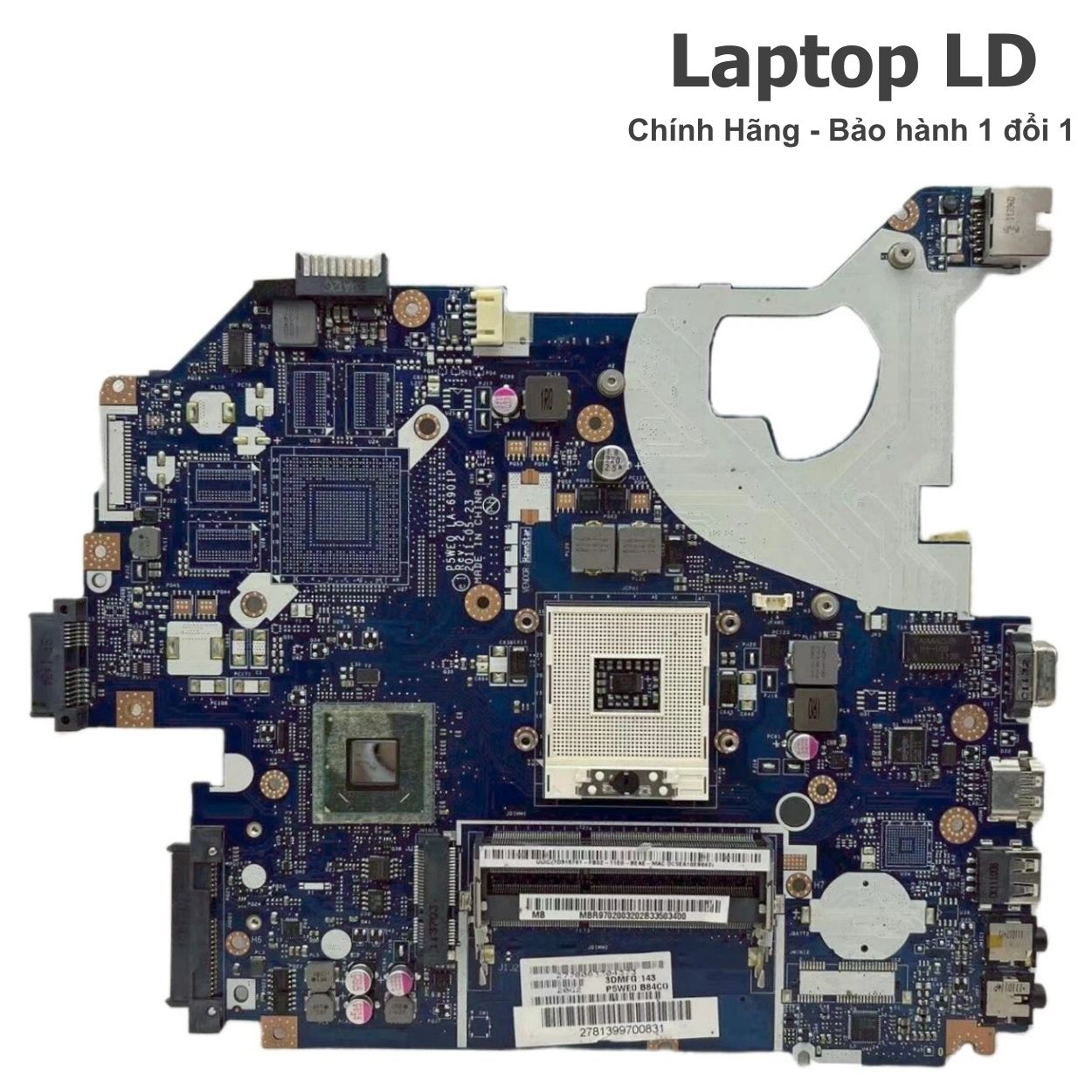 Mainboard chính hãng dành cho dòng Acer Gateway NV57H – laptop 15.6" phổ thông, hiệu năng ổn định cho học tập – văn phòng. Máy sử dụng dòng CPU Intel® Sandy Bridge (i3/i5/i7 thế hệ 2 • 2 nhân 4 luồng • 35W) cùng GPU tích hợp Intel HD Graphics 3000, một số phiên bản có VGA rời AMD Radeon. Mã main chuẩn LA-6901P – hàng zin chính hãng Gateway/Acer, được Laptop LD kiểm tra kỹ CPU – GPU – RAM – HDD/SSD – USB – HDMI – LAN – Wi-Fi đảm bảo hoạt động ổn định như máy xuất xưởng.