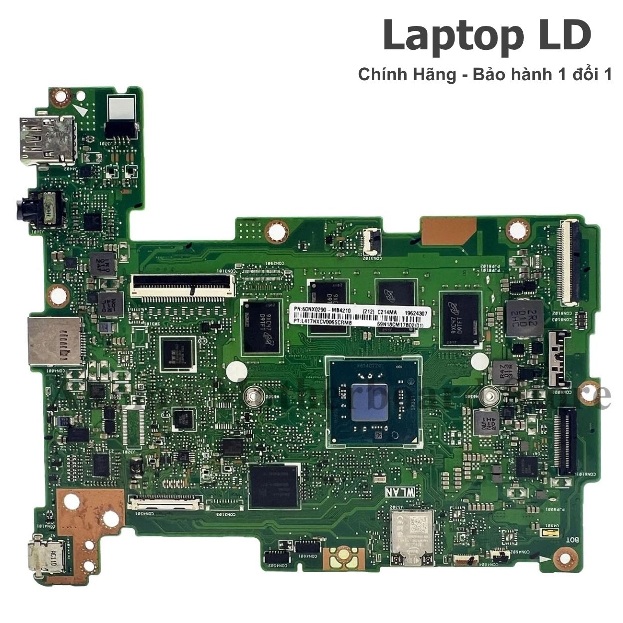 Mainboard cho Asus Chromebook C223NA (11.6") / C423NA (14") / C523NA (15.6"), thiết kế cho Intel® Celeron (Apollo Lake, ví dụ N3350/N3450*) với đồ hoạ tích hợp Intel HD/UHD. Hàng zin chính hãng, đã được Laptop LD test kỹ từng mạch, đảm bảo tương thích ổn định với RAM LPDDR4 on-board, eMMC 32/64GB và cổng USB-C sạc/hiển thị*. (*tuỳ SKU/revision)