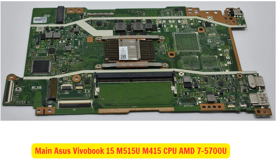 Main laptop (bo mạch chủ) là linh kiện quan trọng nhất trong máy tính, giúp kết nối và điều khiển toàn bộ các phần cứng của hệ thống. Main Asus VivoBook 15 M515U M415 CPU AMD Ryzen 7 5700U là sản phẩm chính hãng Asus, trang bị CPU AMD Ryzen 7 5700U (8 nhân, 16 luồng) với xung cơ bản 1.8GHz và Turbo Boost lên đến 4.3GHz, mang lại hiệu suất vượt trội cho các tác vụ đồ họa, chỉnh sửa video, chơi game nhẹ, xử lý đa nhiệm mạnh mẽ và các ứng dụng yêu cầu hiệu suất cao.