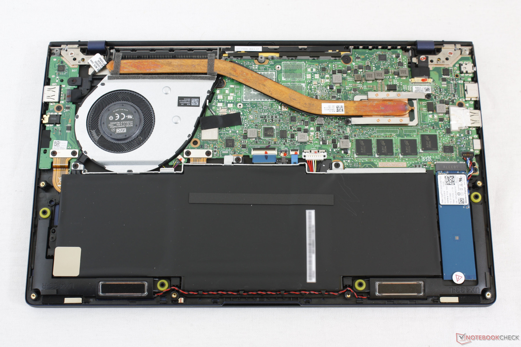 Mainboard ZenBook 13 UX433FA thiết kế siêu mỏng, nhiều cáp dẹt, RAM hàn, cần kỹ thuật viên chuyên nghiệp khi thay để tránh hỏng màn hình, pin, cáp bàn phím.