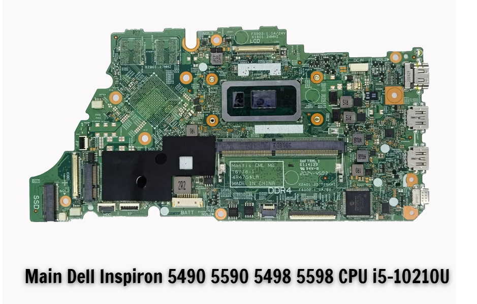 Main laptop (bo mạch chủ) là bộ phận quan trọng nhất trong máy tính, giúp kết nối và điều khiển tất cả các thành phần phần cứng. Main Dell Inspiron 5490, 5590, 5498, 5598 CPU i5-10210U là sản phẩm chính hãng Dell, được trang bị CPU Intel Core i5-10210U thế hệ 10 (4 nhân, 8 luồng) với xung cơ bản 1.6GHz và Turbo Boost lên đến 4.2GHz. Sản phẩm này mang lại hiệu suất mạnh mẽ cho các tác vụ văn phòng, học tập, duyệt web, và các ứng dụng cơ bản đến trung bình.