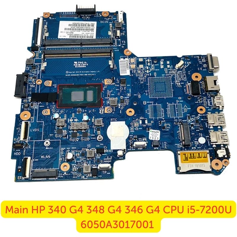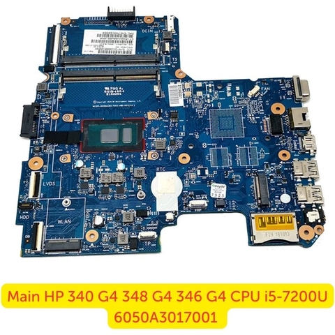 Main laptop HP 340 G4 / 348 G4 / 346 G4 – CPU Intel Core i5-7200U (2 nhân, 4 luồng, xung nhịp cơ bản 2.5GHz – Turbo Boost tối đa 3.1GHz), mã 6050A3017001 là bo mạch chủ zin chính hãng HP, được thiết kế cho dòng laptop văn phòng – doanh nhân HP 300 series.