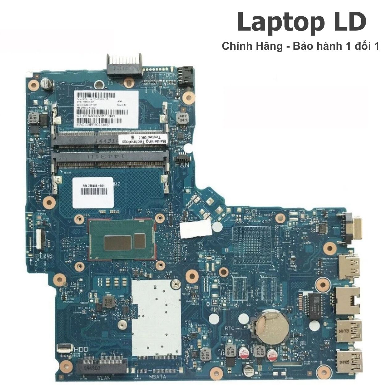 Main được kiểm tra kỹ trước khi giao hoặc lắp đặt tại Laptop LD, đảm bảo hoạt động đầy đủ các chức năng như nguồn, RAM, ổ cứng, USB, VGA/HDMI (nếu có), LAN và Wi-Fi.