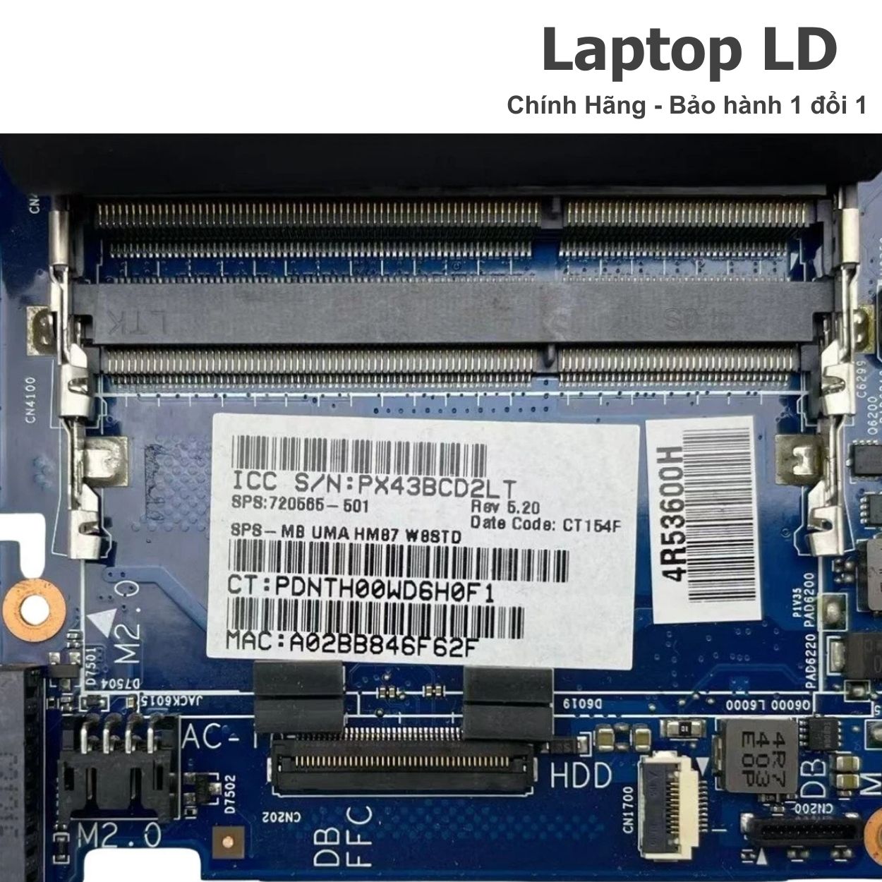 Main được kiểm tra kỹ trước khi giao hoặc lắp đặt tại Laptop LD, đảm bảo các linh kiện quan trọng như nguồn, RAM, HDD/SSD, USB, HDMI, LAN và Wi-Fi hoạt động bình thường.
