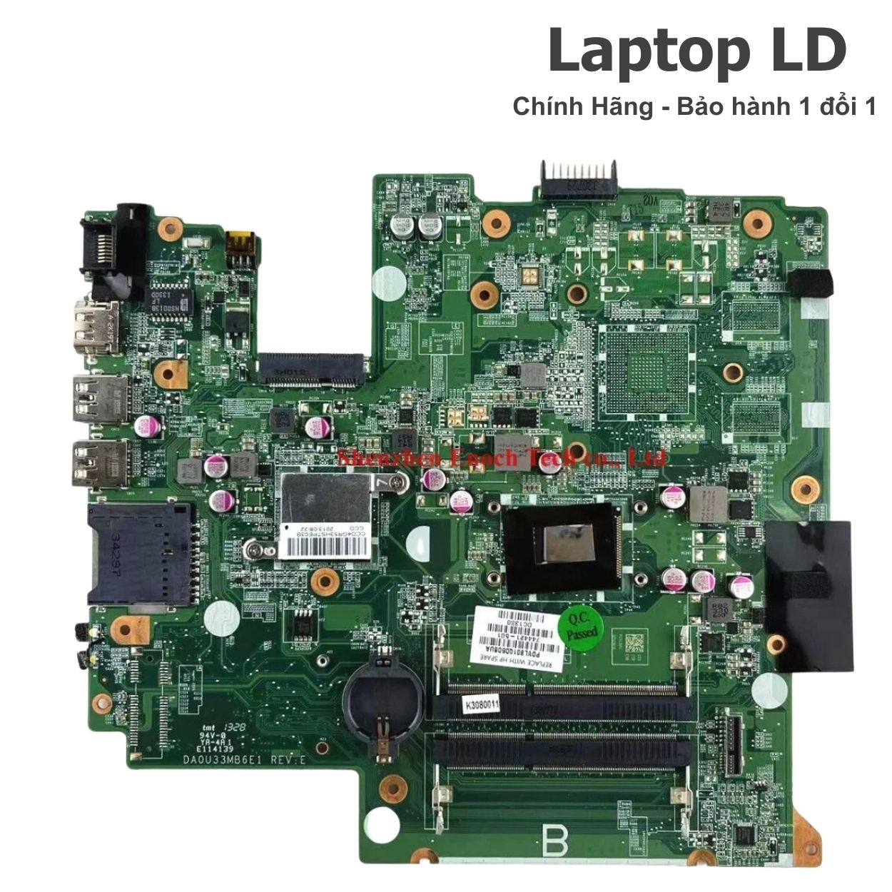 Mainboard được kiểm tra kỹ trước khi giao hoặc lắp đặt tại Laptop LD, đảm bảo các chức năng nguồn, RAM, ổ cứng SATA, màn hình, USB, HDMI/VGA, LAN và Wi-Fi hoạt động ổn định.