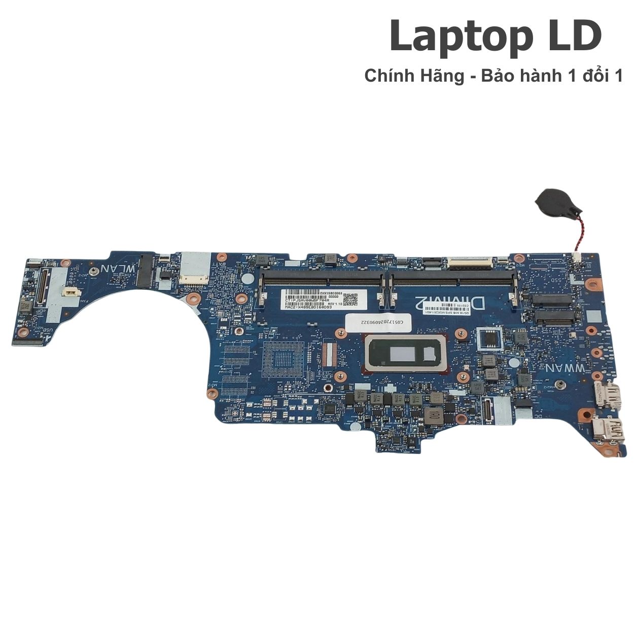 Mainboard được kiểm tra kỹ trước khi giao hoặc lắp đặt tại Laptop LD, đảm bảo các chức năng nguồn, RAM, SSD NVMe, màn hình, USB, HDMI, Thunderbolt, LAN và Wi-Fi hoạt động ổn định.