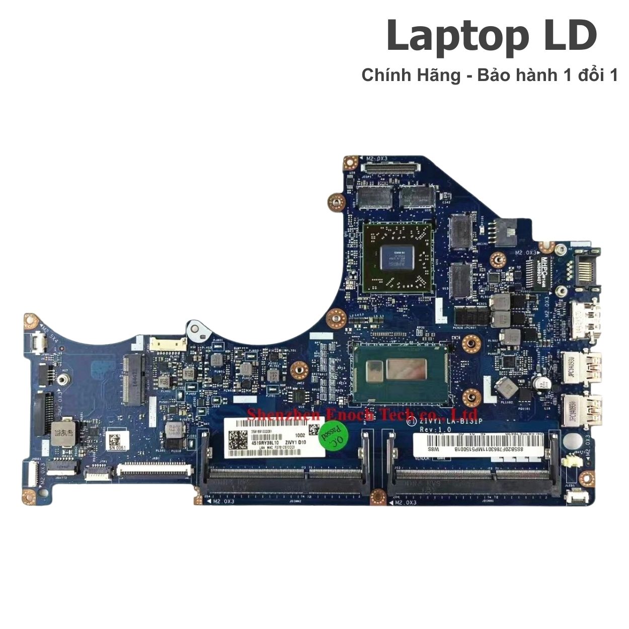 Mainboard được kiểm tra kỹ trước khi giao hoặc lắp đặt tại Laptop LD, đảm bảo các chức năng nguồn, RAM, lưu trữ HDD/SSD SATA, màn hình, USB, HDMI (tùy phiên bản), LAN và Wi-Fi hoạt động ổn định.