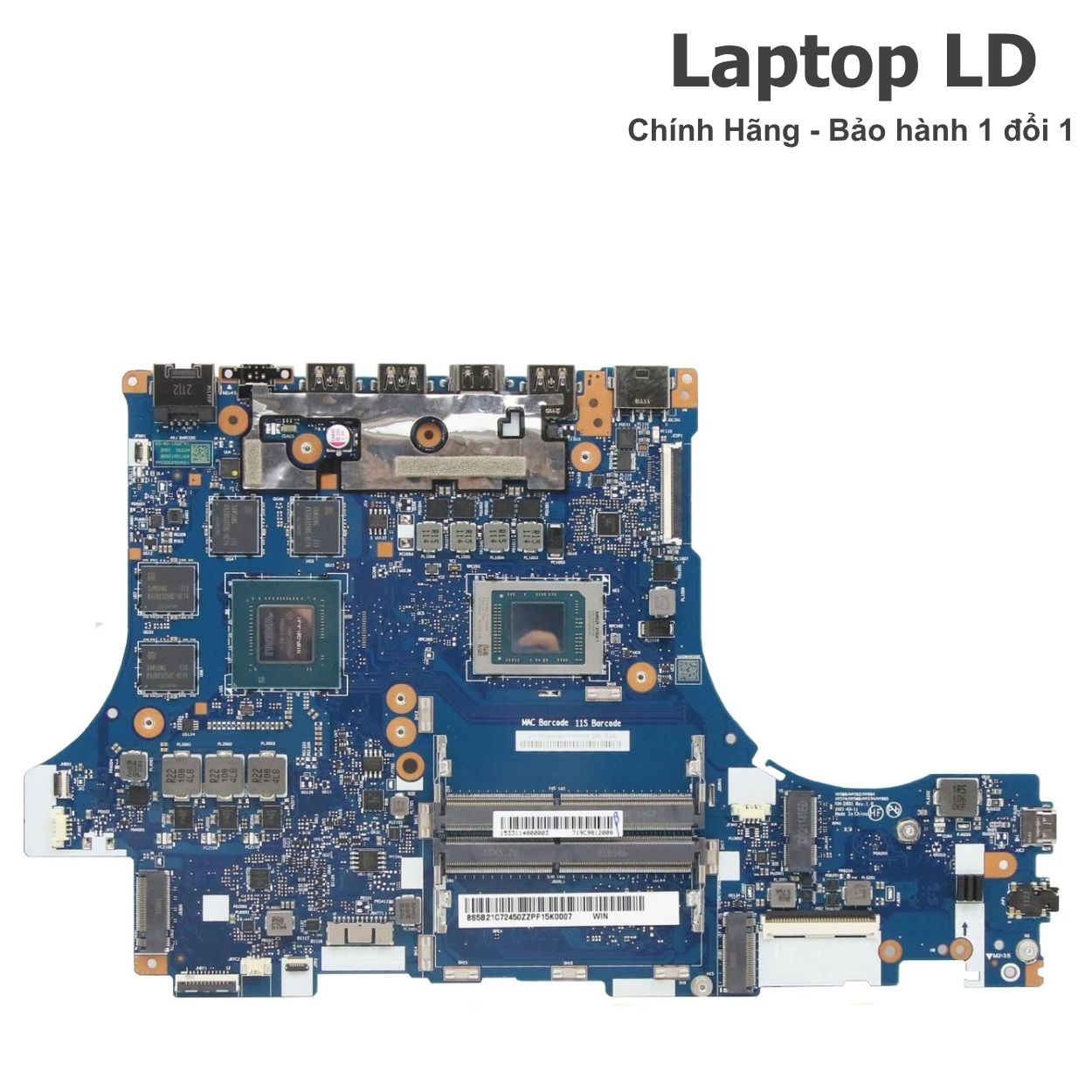 Mainboard chính hãng cho Lenovo Legion 5-17ACH6 (17.3" gaming), nền tảng AMD Ryzen™ 5 5600H (Zen 3 • 6C/12T • 45W • 3.3–4.2GHz) với iGPU Vega & dGPU NVIDIA GeForce GTX 1650 4GB*. Mã main NM-D601 – hàng zin, được Laptop LD test kỹ từng mạch, đảm bảo tương thích ổn định với RAM DDR4, NVMe PCIe, HDMI 2.0 và cổng USB-C (DP Alt*).